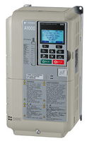 Falownik Yaskawa, zasilanie 3-fazowe 380-480V AC, dopuszczalna moc silnika 110 kW (Normal Duty) 90 kW (Heavy Duty), Moc pozorna: 159 kVA (ND) 137 kVA (HD), Prąd znamionowy 208 A (ND) 180 A (HD), Max. Częstotliwość wyjściowa: 400Hz