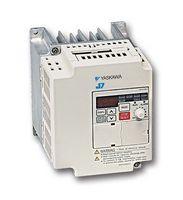 Falownik Yaskawa, zasilanie 3-fazowe 200-240V AC, dopuszczalna moc silnika 0,1 kW, Moc pozorna: 0,3 kVA, Prąd znamionowy 0,8 A, Max. Częstotliwość wyjściowa: 400Hz
