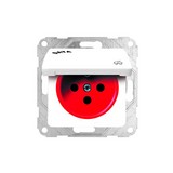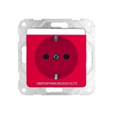 Gniazdo schuko z zabezpieczeniem przeciwprzepięciowym, z akustycznym sygnalizatorem zakłóceń, 16A, 250V~, z samozaciskami. Kolor: czerwony. Wyrób niestandardowy.