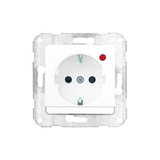 Gniazdo schuko z lampką - wkaźnikiem obecności napięcia polo.fiorena, 16A, 250V~, z zaciskami śrubowymi. Dostępne kolory: biały RAL 9010, kremowy RAL 1013, srebrny metalic RAL 9006, antracytowy RAL 7015. Wyrób niestandardowy.