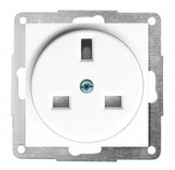 Gniazdo brytyjskie polo.fiorena, 13A, 250V~, z przesłonami styków, z zaciskami śrubowymi. Dostępne kolory: biały RAL 9010, kremowy RAL 1013. Wyrób niestandardowy.