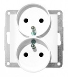 Gniazdo podwójne kompletne bez uziemienia z przesłonami styków polo.fiorena, 16A, 250V~, z zaciskami śrubowymi. Dostępne kolory: biały RAL 9010, kremowy RAL 1013, srebrny metalic RAL 9006, antracytowy RAL 7015. Wyrób niestandardowy.