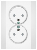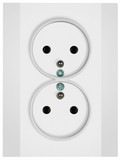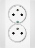 Gniazdo podwójne kompletne bez uziemienia z przesłonami styków polo.fiorena - dostępne kolory: biały, kremowy, srebrny metalic, antracytowy
