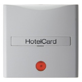 Łącznik na kartę hotelową-nasadka z nadrukiem i czerwoną soczewką PL Berker Kwadrat Hager dostępne kolory: kremowy połysk, biały połysk. Maksymalna szerokość karty 54 mm; maksymalna grubość karty 1,4 mm; do numerów zam. 5056, 5056 01. Z nadrukiem “Hotelcard”. Do łącznika klawiszowego przyciskowego do nasadek na kartę hotelową