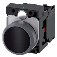 Przycisk Siemens; Z samopowrotem; Materiał obudowy: plastikowo-metalowy; Płaski; Średnica: fi22mm; kolor: czarny; 1NO; zaciski śrubowe