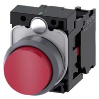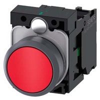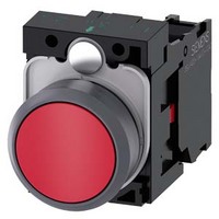 Przycisk Siemens; Z samopowrotem; Materiał obudowy: plastikowo-metalowy; Płaski; Średnica: fi22mm; kolor: czerwony; 1NO; zaciski śrubowe