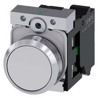 Przycisk Siemens; Z samopowrotem; Materiał obudowy: metalowy; Płaski; Średnica: fi22mm; kolor: biały; 1NO; zaciski śrubowe
