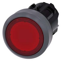 Główka przycisku Siemens; Materiał obudowy: plastikowo-metalowy; Bez samopowrotu; Płaski, podświtlany; Średnica: fi22mm; kolor: czerwony