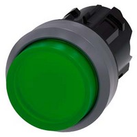 Główka przycisku Siemens; Materiał obudowy: plastikowo-metalowy; Bez samopowrotu; Płaski, podświtlany; Średnica: fi22mm; kolor: zielony