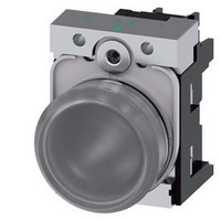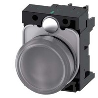 Lampka sygnalizaczjna Siemens: soczewka gładka; Materiał obudowy: plastikowy; Średnica: 22mm; Napięcie znamionowe: 230V AC; kolor: przeźroczysty; okrągła; Zaciski śrubowe